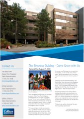 Be greeted every morning by a beautiful lobby filled with orchids, classical music and hand laid Italian glass mosaics. The Empress Building has great amenities and is surrounded by relaxing green space. An appealing professional boutique tower home to both large international companies and small local professional tenants, as well as clinical spaces. A great building to call home for your business.