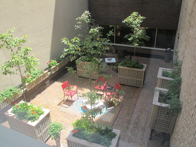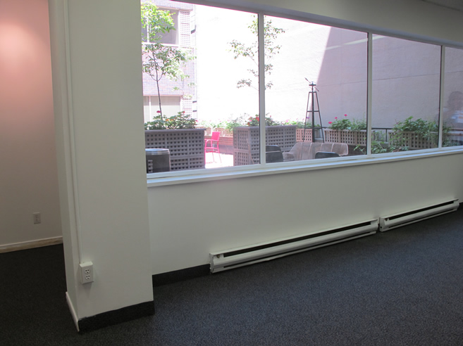 The courtyard office situated directly off the elevator has 1150 square feet of large open concept work space, generous reception area, private office and board room. Double French doors lead to the board room with contemporary kitchen and halogen track lights. This unit has a view onto a courtyard designed by an internationally renowned artist. This green courtyard with edible and floral plantings brings a touch of nature to this inspiring setting and is easily accessible from this office.