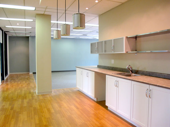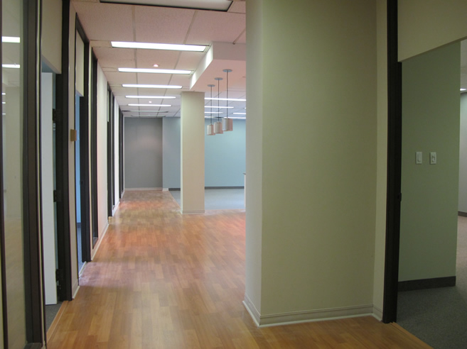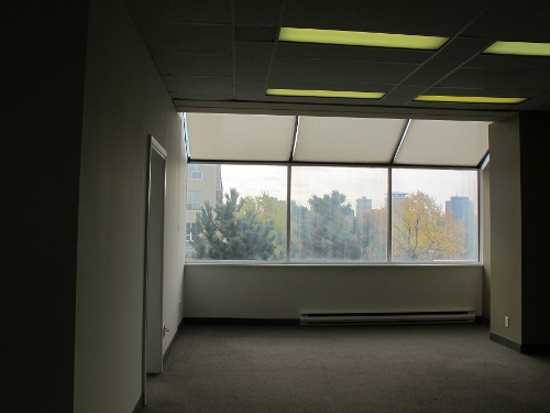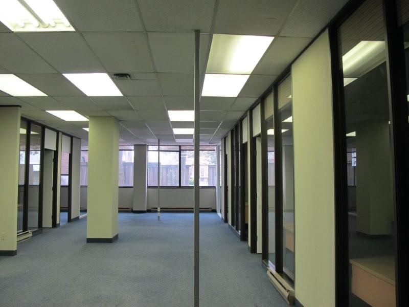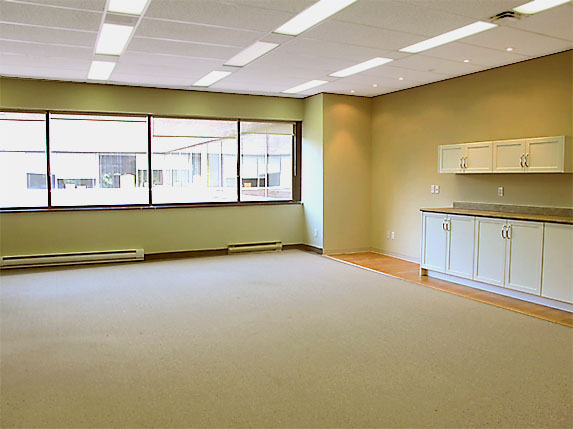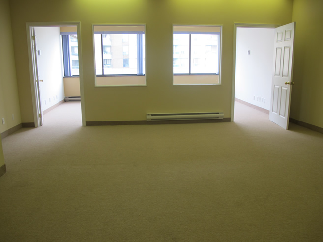 This suite, with a beautiful treed view is presently an expansive open space of 746 square feet with closet space. It boasts brand new engineered flooring in a designer color, architectural details such as a curved wall, generous ceiling moldings, and 6 inch baseboards. There is a possibility of dividing the space to suit your business needs.