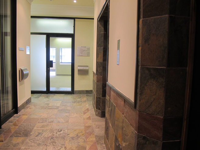 3,400 sq. ft. ground floor office unit. Enter our orchid filled sumptuous lobby on the way to your space accessed by double doors. The separate reception room is graced by engineered flooring with coat closets. The unit has two large common work station areas and seven excellent sized glass filled private offices. The space has wall to wall windows with a lovely view providing natural light throughout the unit. A large lunch/kitchen area is included in the space. Wiring throughout for IT and a separate IT room. Direct access to designer washrooms. The ground floor has a caf� open for breakfast and lunch serving fresh sushi and continental cuisine.