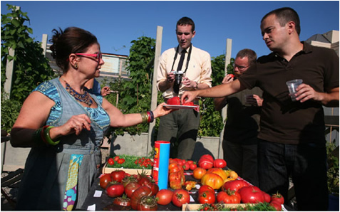 Reiss, showcased in a previous Fed column, grows over three-dozen breeds of tomatoes on the roof of an office building that she and her husband own. The firm flesh of the speckled peach tomato, with its undertone of caramel, succeeds in stopping Josephson in his verbal tracks. “That is amazing,” he exclaims, for once unable to cite something he's had that's better.